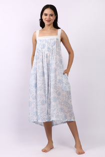 Lotus Floriage Strappy Pintuck Dress White Sky