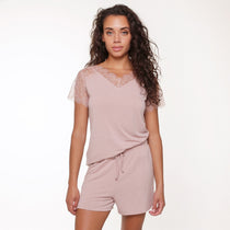 When you’re in the mood for something breezy, a sleep short set or cami pyjama top is ideal. The Fable and Eve Burnt Orange Geo Print Cami & Shorts Set or the Lingadore Lace Sleeve Knit Pyjama Shorts Set in Rose Dust bring a playful, feminine edge without compromising comfort.