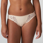 Front view of PrimaDonna Deauville Rio Brief Café Latte, featuring delicate embroidery and a flattering neutral tone.
