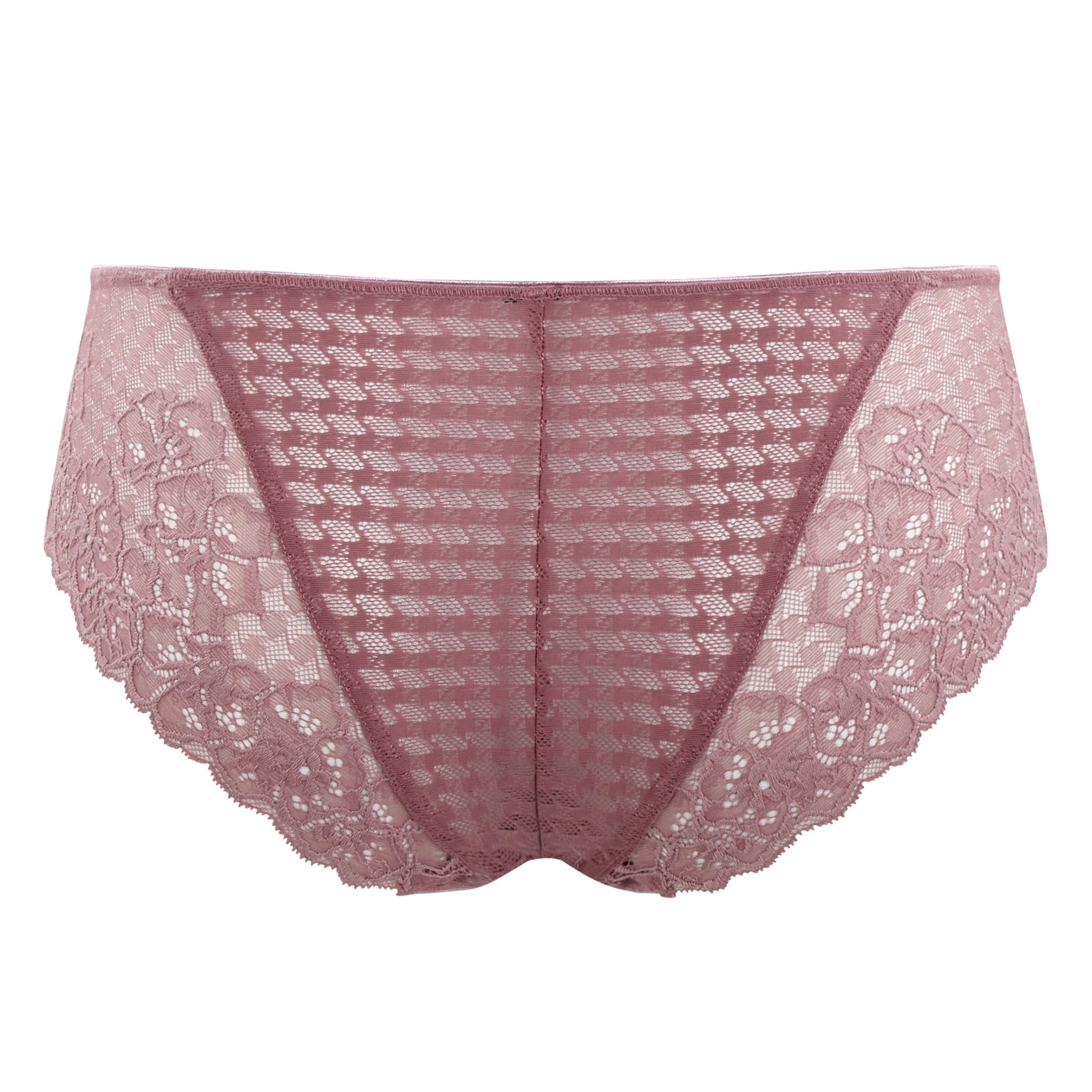 Flat lay of Envy Stretch Lace Brief Rose Mauve showing overall jacquard pattern and soft lace back.