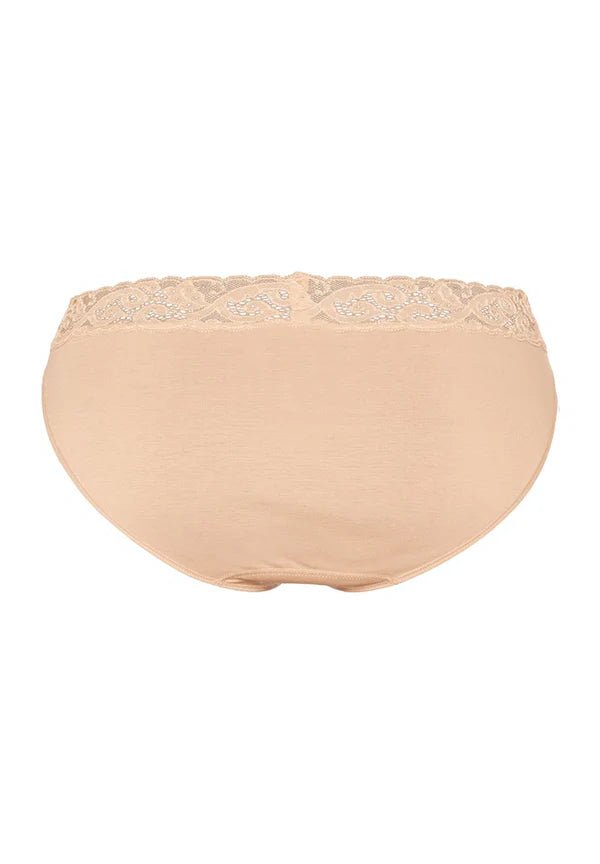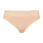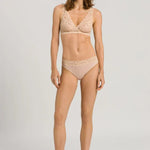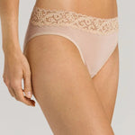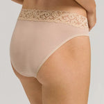 The HANRO Moments mini briefs blend sophistication and femininity with delicate French lace on the low waistband, ideal for pairing with low-rise jeans and hip-cut outfits. Crafted from ultra-soft, mercerised 100% Swiss cotton, these high-cut briefs create a flattering, leg-lengthening silhouette. Part of the Moments collection, they combine premium mercerised cotton and luxurious French Textronic lace for exceptional comfort and elegant style. The elastic lace ensures a perfect fit for everyday wear. Machine washable at 40°C for easy care. Enjoy classic sizing and lasting comfort.