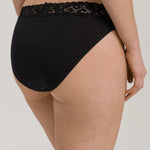 The HANRO Moments mini briefs blend sophistication and femininity with delicate French lace on the low waistband, ideal for pairing with low-rise jeans and hip-cut outfits. Crafted from ultra-soft, mercerised 100% Swiss cotton, these high-cut briefs create a flattering, leg-lengthening silhouette. Part of the Moments collection, they combine premium mercerised cotton and luxurious French Textronic lace for exceptional comfort and elegant style. The elastic lace ensures a perfect fit for everyday wear. Machine washable at 40°C for easy care. Enjoy classic sizing and lasting comfort.
