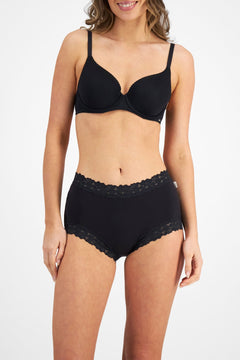 Jockey's best-selling Parisienne range, the Parisienne Cotton Bikini Brief is made from cotton. Mid-rise waist with a low to mid leg-line without sacrificing good bottom coverage. Trimmed with soft, no-dig lace that is smooth under clothes. Cotton is cool, comfortable underwear, breathable and moisture-wicking and a popular choice for everyday underwear for women.