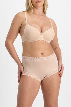 Jockey's best-selling Parisienne range, the Parisienne Cotton Bikini Brief is made from cotton. Mid-rise waist with a low to mid leg-line without sacrificing good bottom coverage. Trimmed with soft, no-dig lace that is smooth under clothes. Cotton is cool, comfortable underwear, breathable and moisture-wicking and a popular choice for everyday underwear for women.