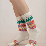 These warm, woolen socks for women are blended with cashmere and viscose for extra warmth and softness and made by Bleuforet in France. These are high quality 9 gauge ladies socks and come in one size (36-40 EU). The beautiful Jacquard pattern is very Scandinavian and available in this Ecru / off white colour.
