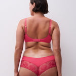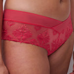 The Sweet Velvet colourway appears as a warm, vibrant coral-pink, elevated by tonal embroidery that adds subtle depth and sophistication. Perfect for those searching for a lace shorty brief, embroidered hipster underwear, or luxury Chantelle briefs, this piece delivers both style and wearability.