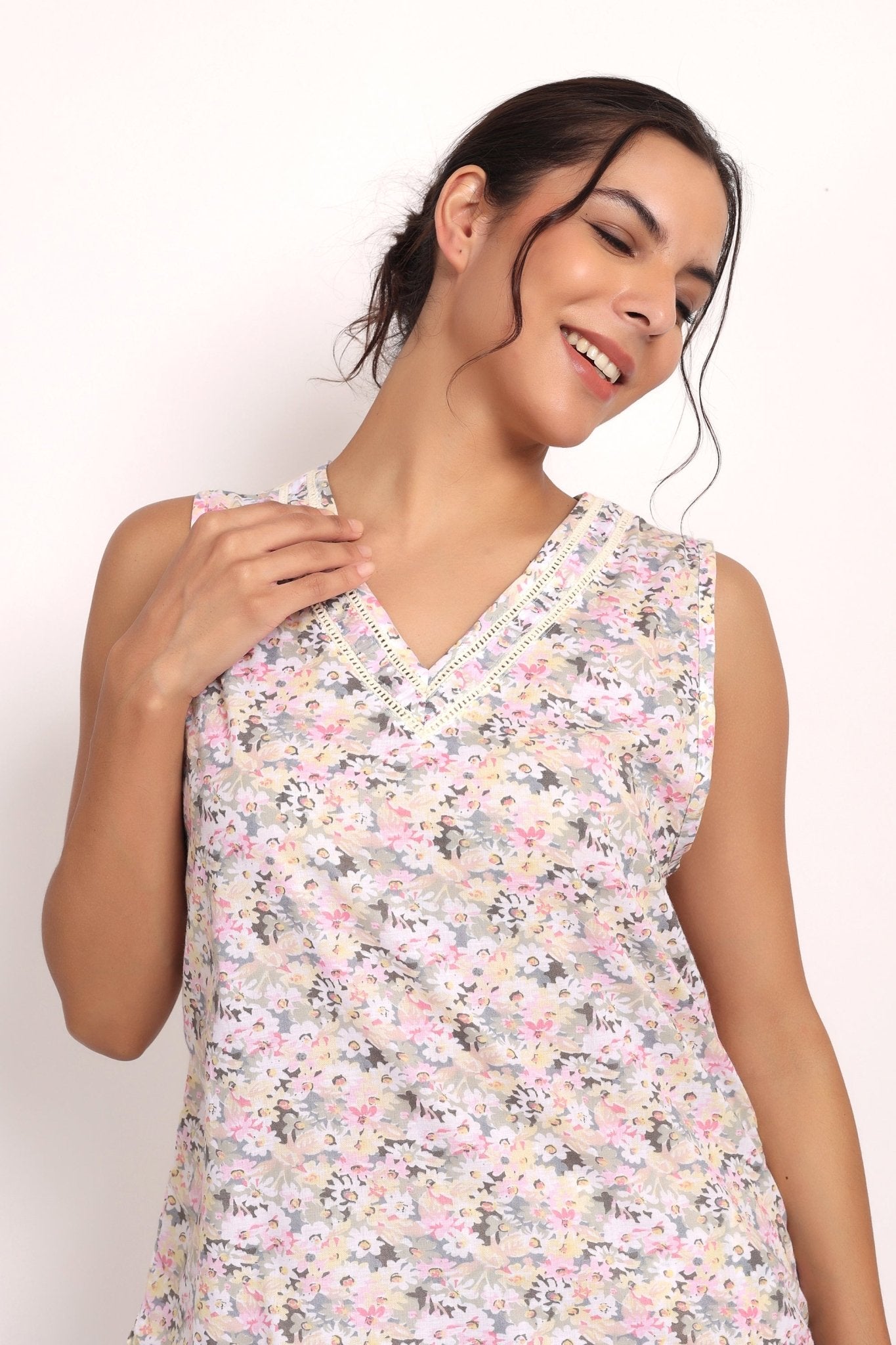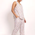 The Gatsby sleeveless, 100% cotton PJ Set is a cool and comfortable sleepwear choice that is sure to bring the feeling of summer to a relaxed day at home. Made from the finest Indian cotton voile in this gorgeous pastel daisy print - this is a pure cotton pyjama set designed with both style and comfort in mind.