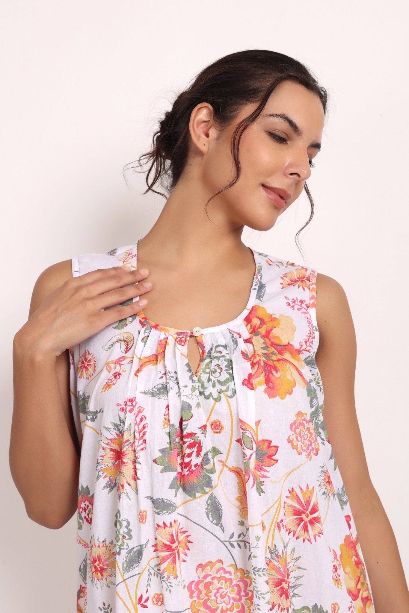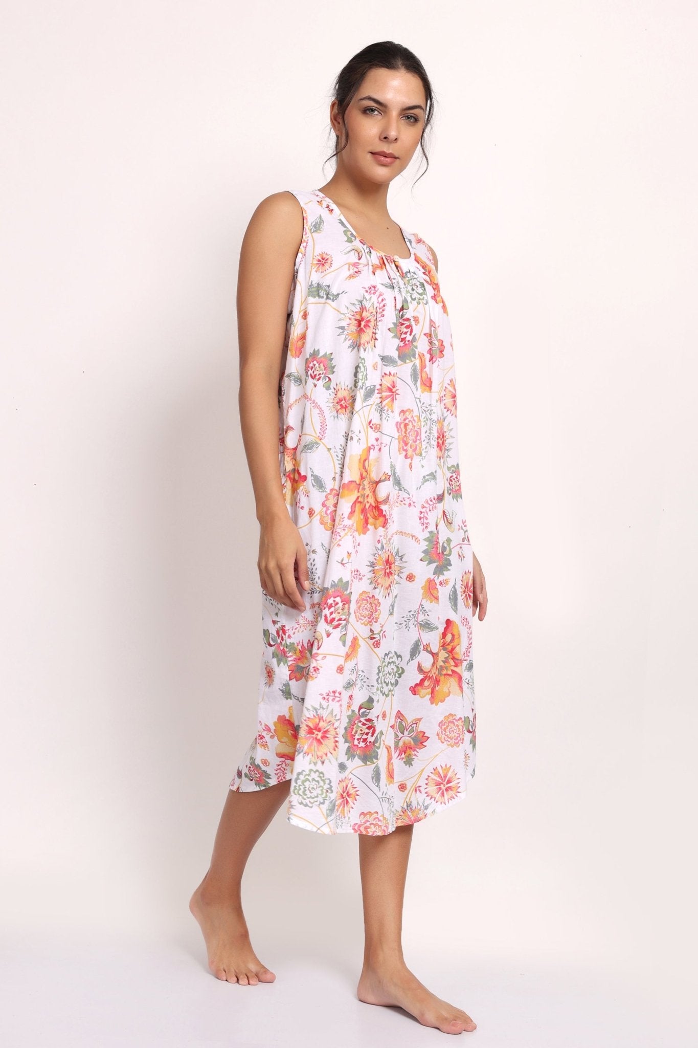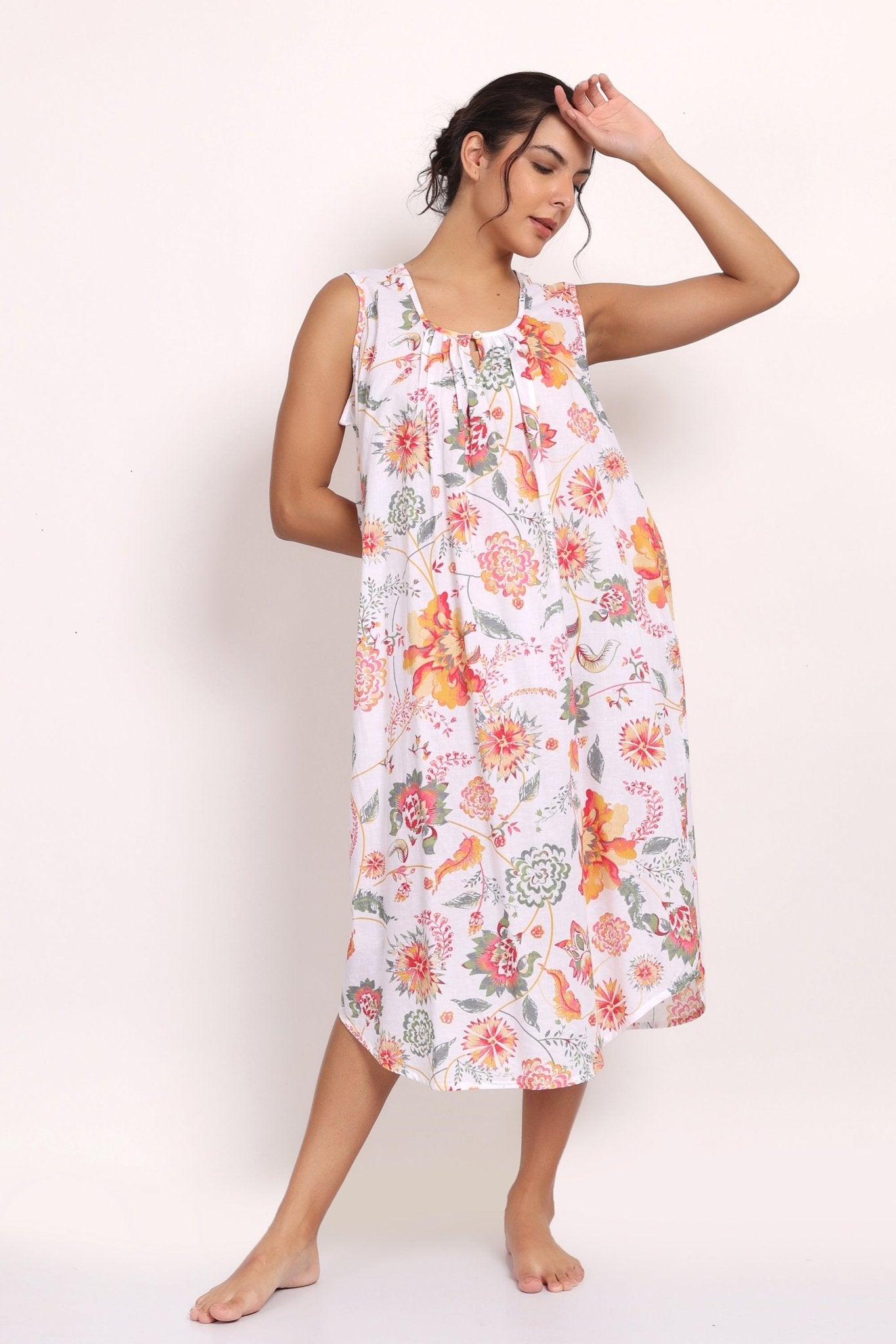 The Passionflower sleeveless pure cotton nightie by Lotus is the perfect choice for those hot summer nights. Made from the finest Indian cotton voile in this lovely coral botanical print - this is a pure cotton nightdress designed with both style and comfort in mind.