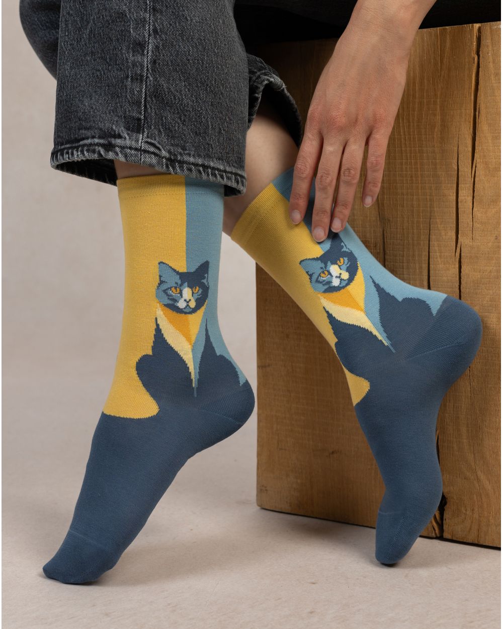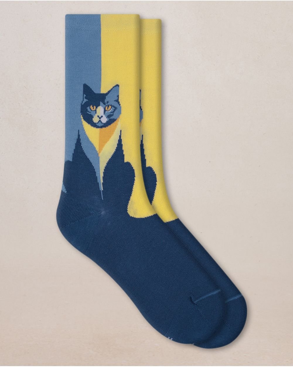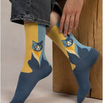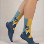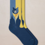 Cotton Cat Pattern Socks Dark Blue Yellow