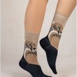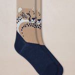 Fashion cotton socks by Bleuforet, in fun prints are a great gift for women. These ladies cotton socks are 18 gauge and feature a Cheetah on a beige base with navy colour bottom. Cannot promise that these socks will make you as fast as a Cheetah but you'll feel fabulous wearing them or gifting them to the woman that has everything. These are mid-length socks and One size (36-40 EU) fits most.