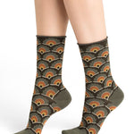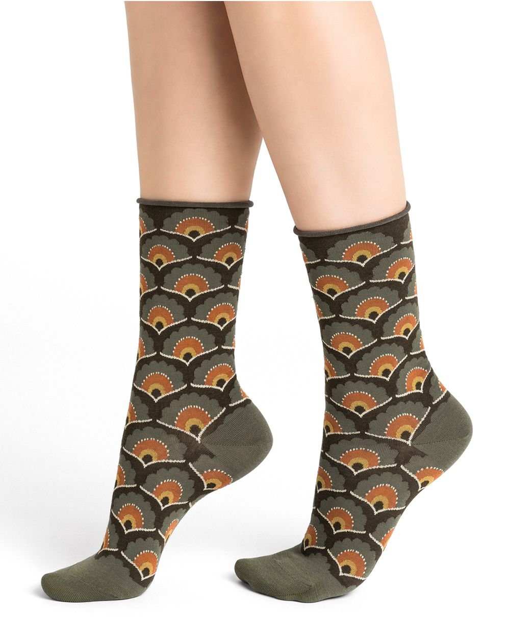 Bleuforet's Velvet Cotton socks for women, made with 97% cotton have non-binding, roll-tops. For socks that are soft and won't cut in or cut your circulation, these cotton socks for women are luxury for your feet. With a 70's vibe, this fan pattern has glittery threads and add a little sparkle to your feet.