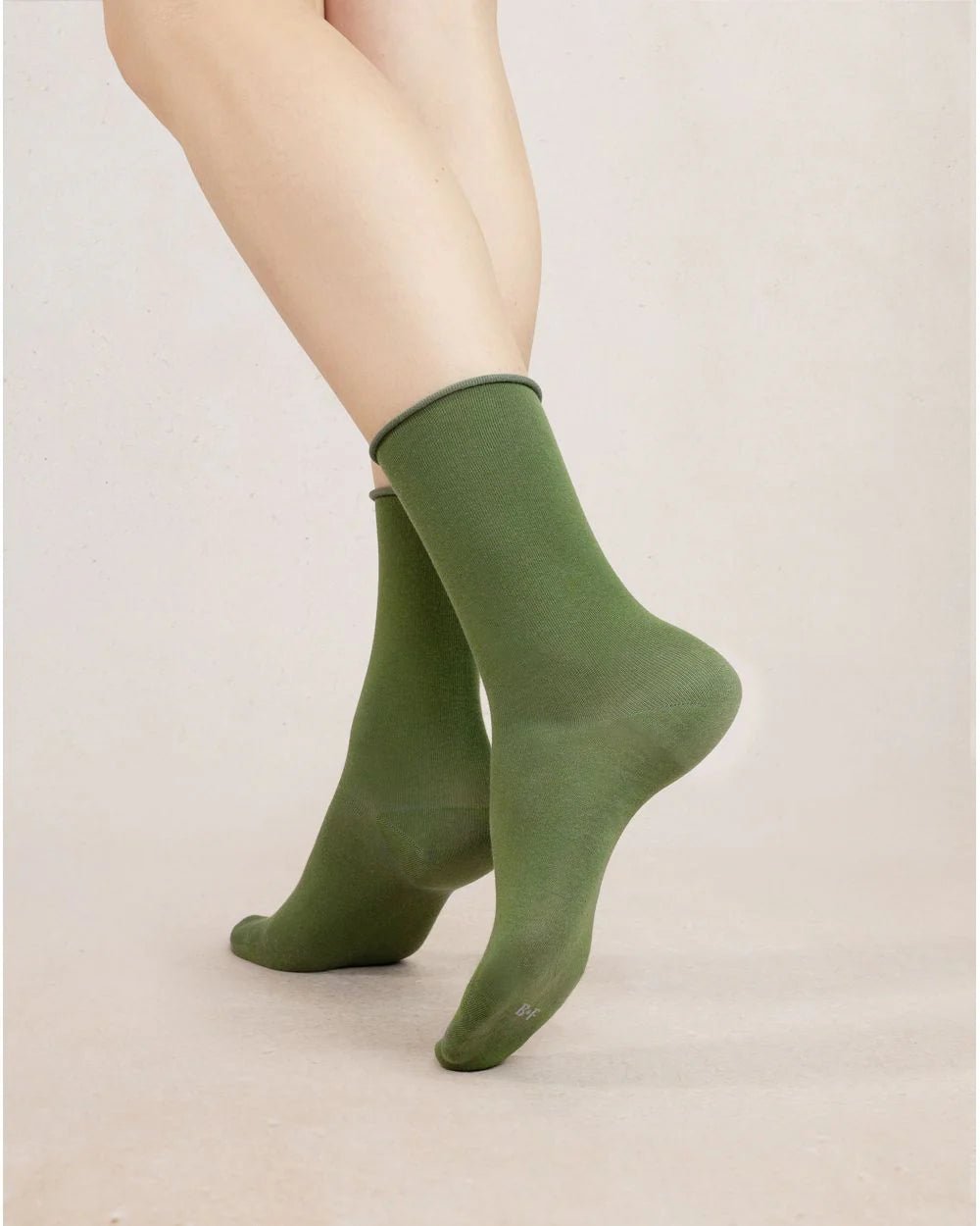 Bleuforet's Velvet Cotton socks for women made with 97% cotton have non-binding, roll-tops. For socks that are soft and won't cut in or cut your circulation, these cotton socks for women are luxury for your feet. Available in this beautiful cactus green colour and other seasonal colours.