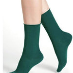 Bleuforet's Velvet Cotton socks for women made with 97% cotton have non-binding, roll-tops. For socks that are soft and won't cut in or cut your circulation, these cotton socks for women are luxury for your feet. Available in this beautiful pine green and other seasonal colours.