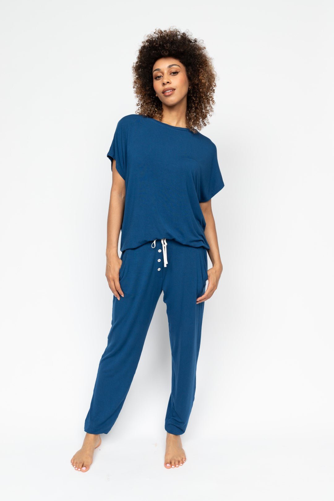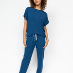 Harriet Slouch Jersey Cap Sleeve Lounge PJ Set Teal Blue