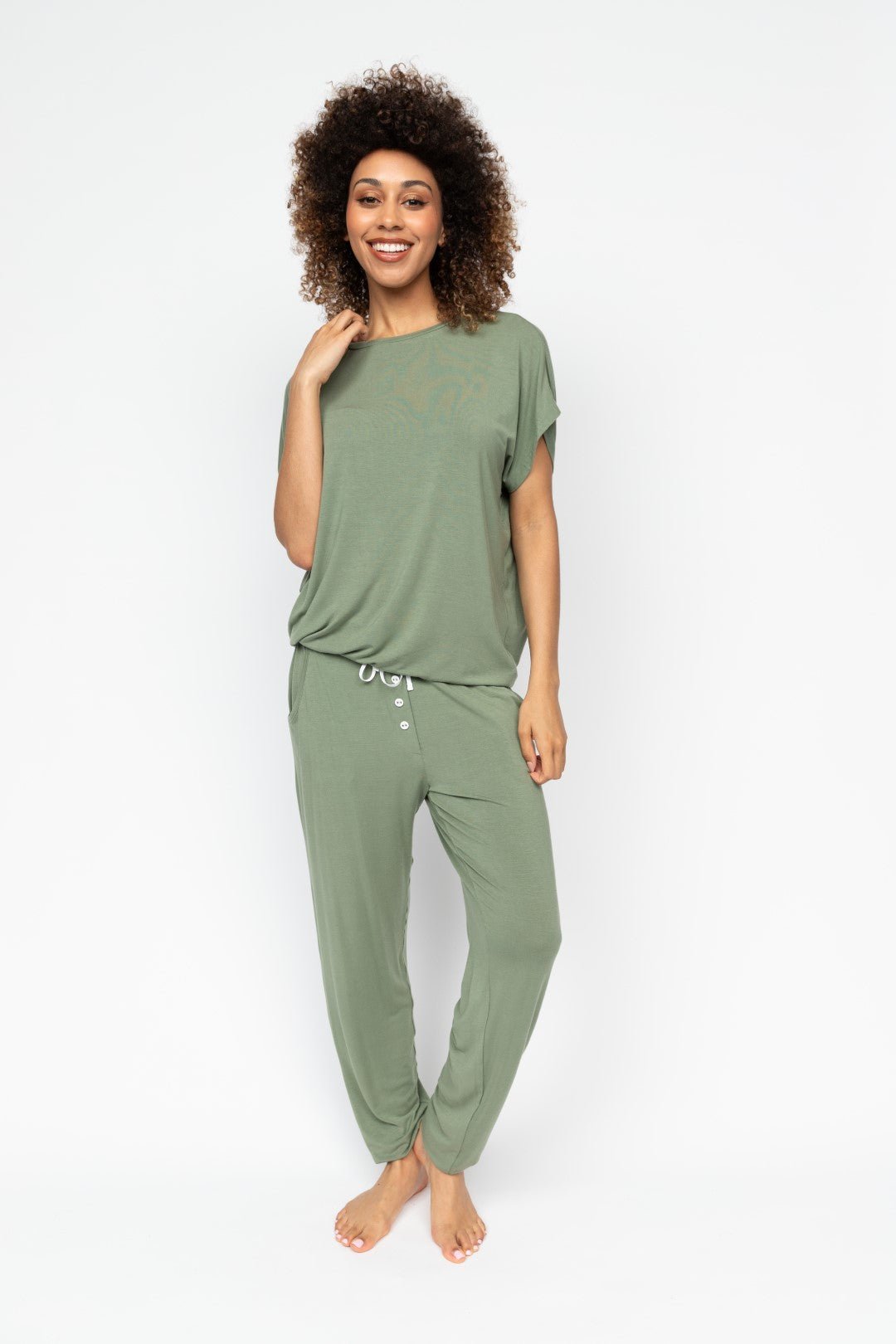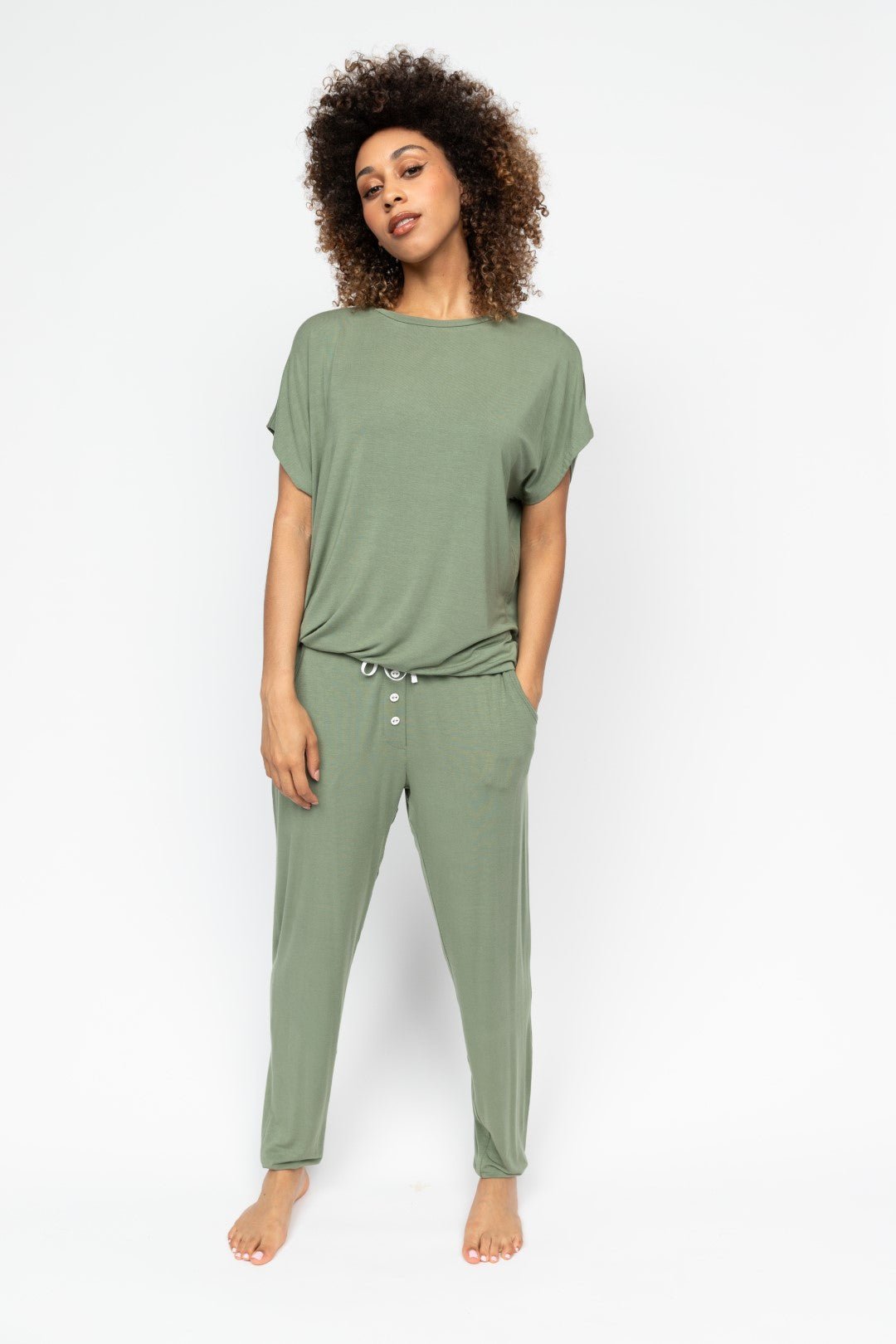 Lea Slouch Jersey Cap Sleeve Pyjama Lounge Set Sage