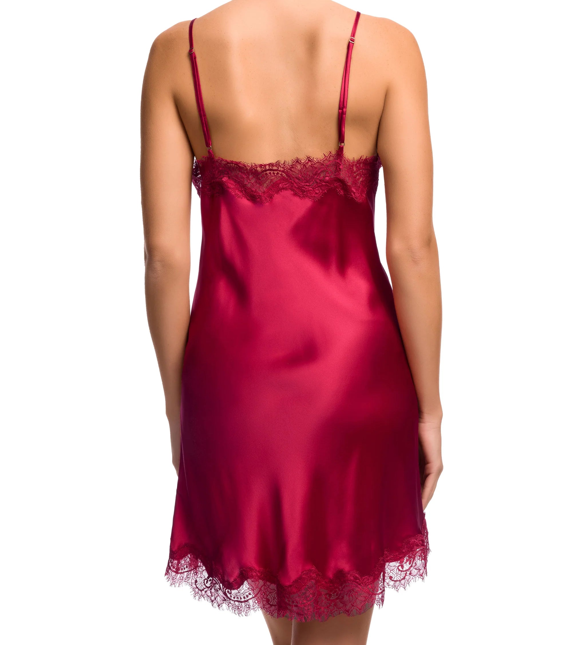Model wearing Greta IM Lace Bodysuit in Red by Janira, featuring vibrant lace details, plunge neckline, and supportive, flattering fit.