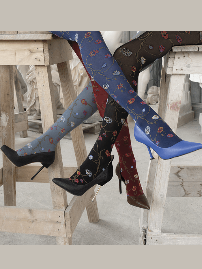 From Trasparenze, our leading Italian hosiery brand.  Multi-colour floral patterned tights in a bold and playful design.  These 50 denier tights are woven from the finest yarns, so they feel comfortable against the skin while adding warmth and flair to your favourite outfit.