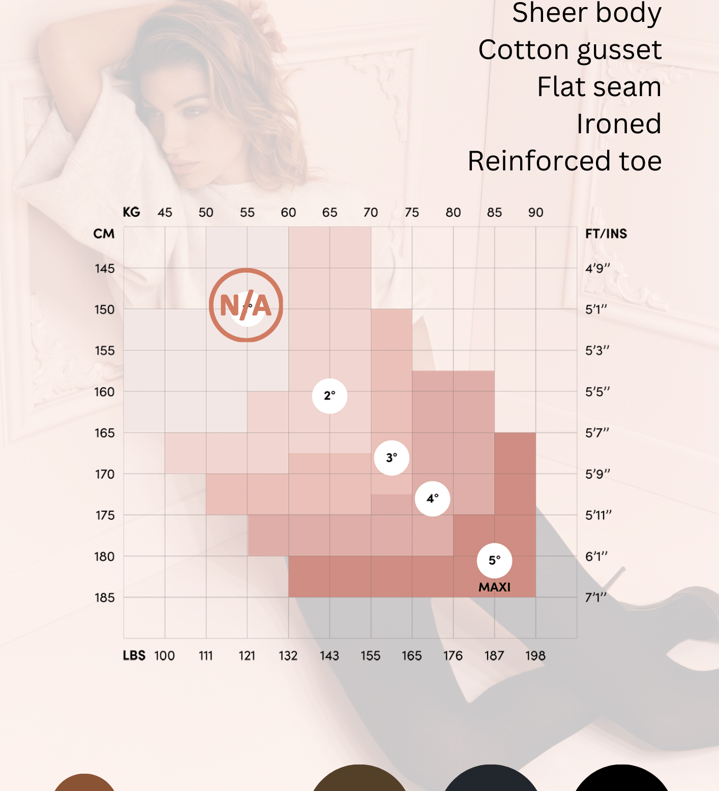 Opaque hosiery typically ranges from 40 to 100+ denier. The higher the denier, the thicker and more opaque the tights—ideal for warmth and coverage in cooler months.