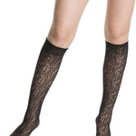 Trasparenze Compass Fish Net Knee High stockings with stunning floral lace effect with elastic free raw-cut top line. A great fashion knee high to dress up any outfit.