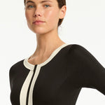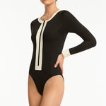 The Foundation is proud to introduce the India Hicks X Sea Level swimwear collection. The India Hicks X Sea Level Border Surf Suit One Piece swimsuit brings a tuxedo-like elegance to swimwear. The Surf Suit features: