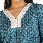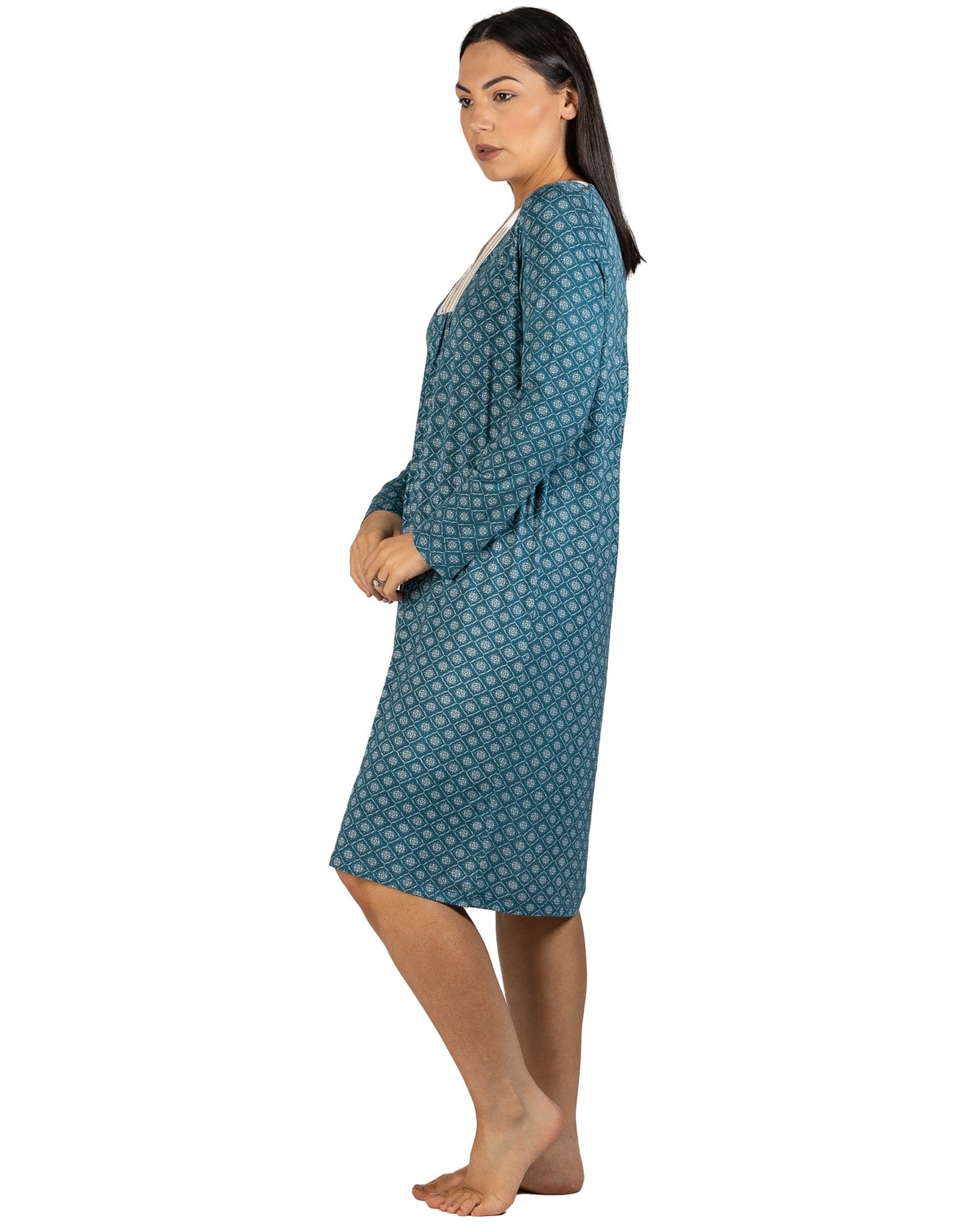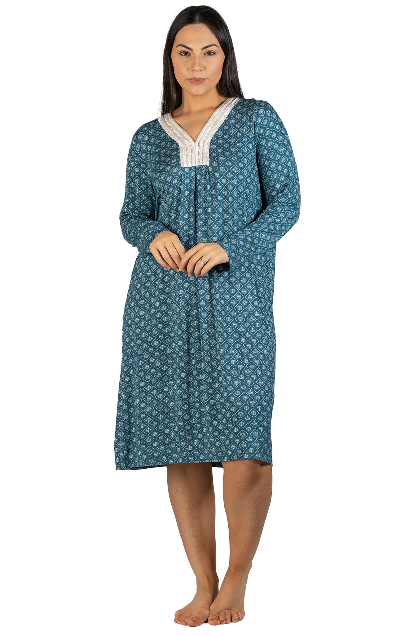 This nightie boasts a Moroccan inspired print and delicate satin and lace trim on the vee neckline. Sleep in style and comfort with this exclusive piece.