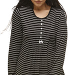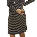 The Stripe Long Sleeve nightie combines a classic black and white stripe print with softly tailored details.  It features a contrasting yarn dyed stripe with mock button placket and pleats, finished with an ivory bow. The silky, soft viscose knit has beautiful drape and feels lovely against the skin.