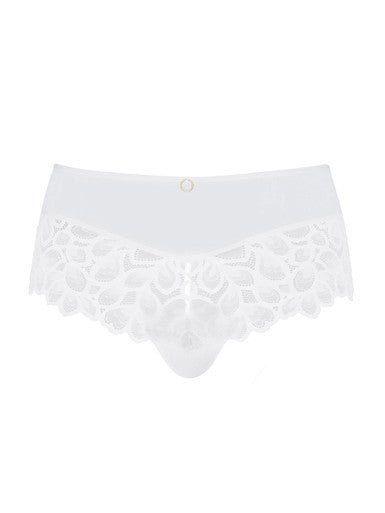 Perfect for those seeking full-coverage lace panties that are both elegant and wearable, this deep brief combines style and function seamlessly. Whether you're pairing it with matching lace bras or using it under everyday clothes, its ivory shade is soft, classic, and versatile.