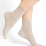 Bleuforet's Velvet Cotton Ankle socks for women, made with 97% cotton have non-binding, roll-tops. For socks that are soft and won't cut in or cut your circulation, these cotton ankle socks for women are luxury for your feet. Available in Sahara Beige and other ongoing and seasonal colours.