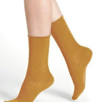 Bleuforet's Velvet Cotton socks for women made with 97% cotton have non-binding, roll-tops. For socks that are soft and won't cut in or cut your circulation, these cotton socks for women are luxury for your feet. Available in this beautiful curry / mustard colour and other seasonal colours.