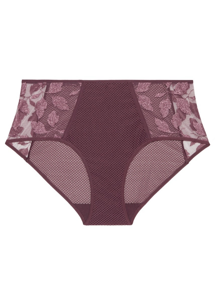 This lovely Dahlia Full Brief matches the Dahlia Full Cup Bra perfectly and features a stunning dusky pink floral/leaf embroidered design across the hips with a slight shimmer to add a touch of glamour to your everyday wardrobe. The high waist design and the double tulle full-coverage rear is a welcome addition to this beautiful, comfortable pair of briefs.