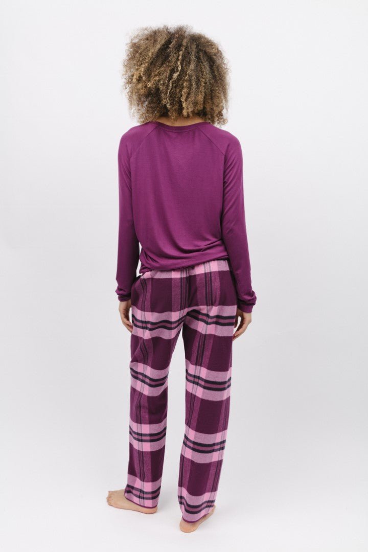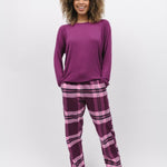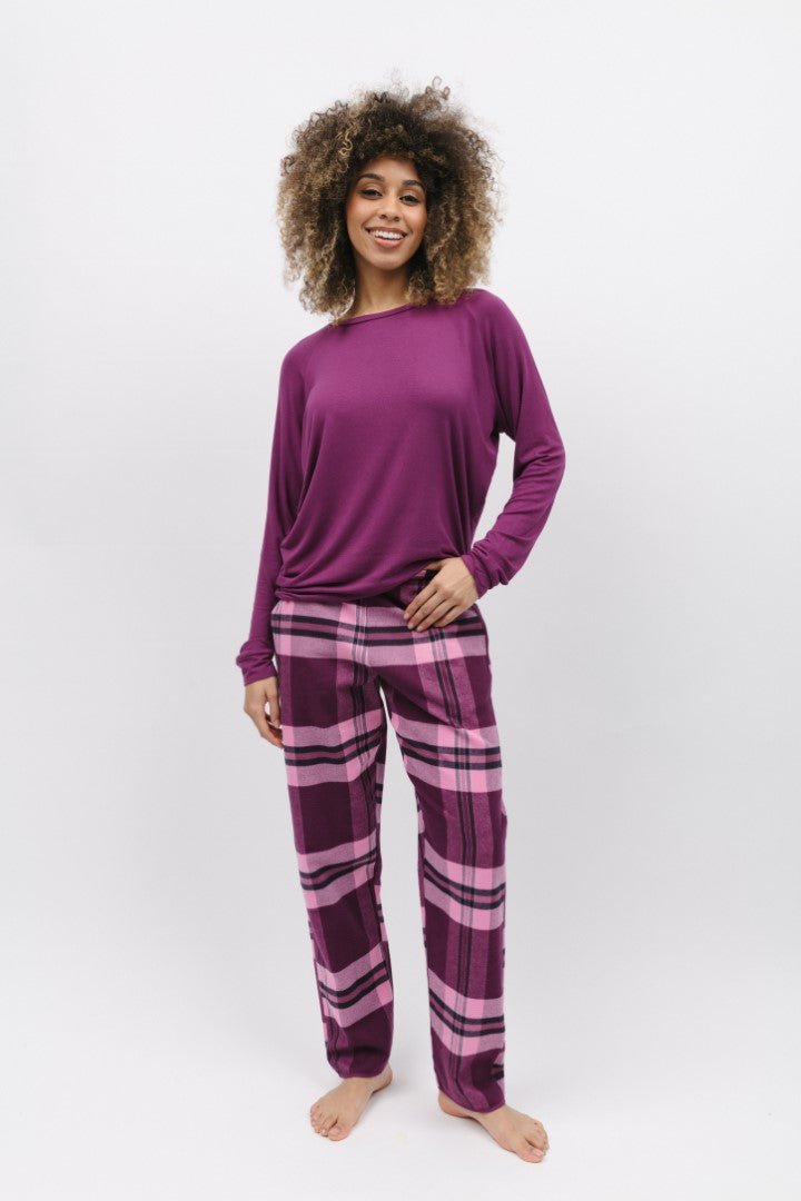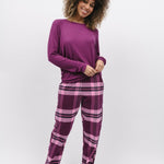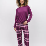 Carina Modal Knit Top and Eve Check Pant Magenta