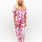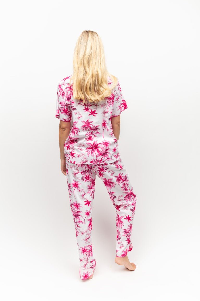 Haley Palm Print Cotton/Modal Cropped PJ Set Hot Pink