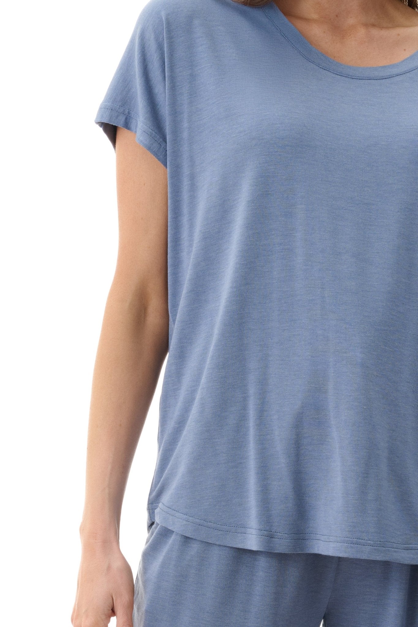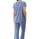 Givoni Le Marle Wide Leg Pyjama set in Dusk Marle Modal knit, featuring relaxed short-sleeve tee, wide-leg pants, side pockets, and drawstring waist.