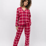 CyberJammies Noel Red Check Cosy pyjama is made with 100% brushed cotton so it is super snug and cosy for a winter night. The red and white check has a subtle navy stripe and features navy modal trim and covered buttons. The long pant has two side pockets, drawstring front and elastic at the back.