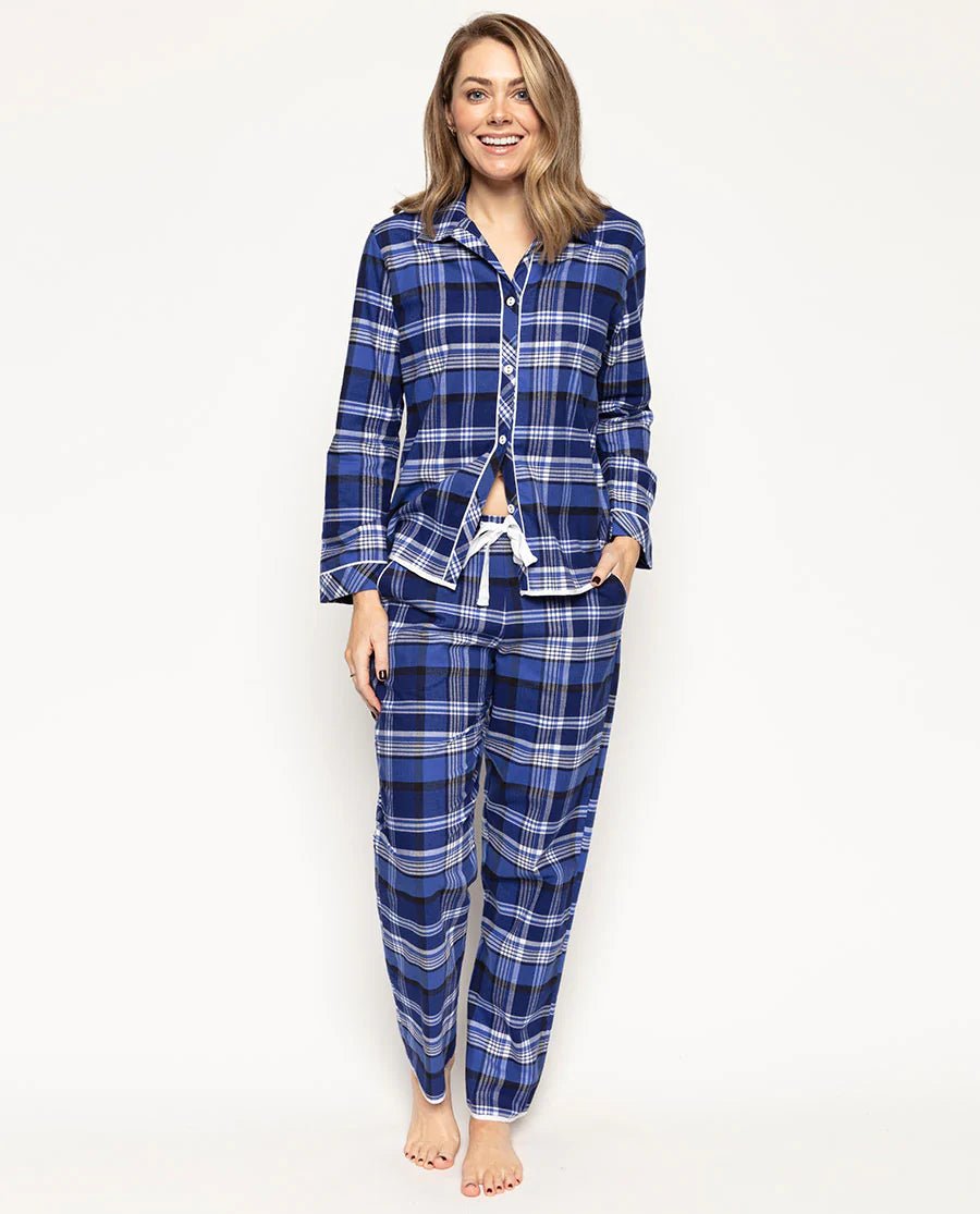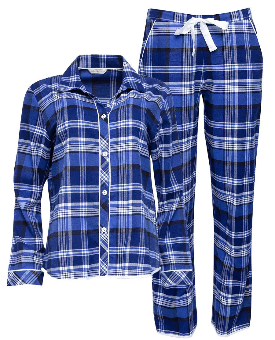 Bold and bright blues with white highlights combine to create another winning Cyberjammies check in our Riley Check PJ Set. Made from super-soft, brushed 100% cotton, this PJ set is trimmed with white modal. The long-sleeved nightshirt has an open collar, fastens at the front with white modal-covered buttons and has a lightly shaped hem.