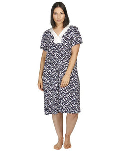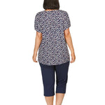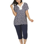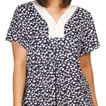 • Printed Top with Satin & Lace Vee Neck Trim
