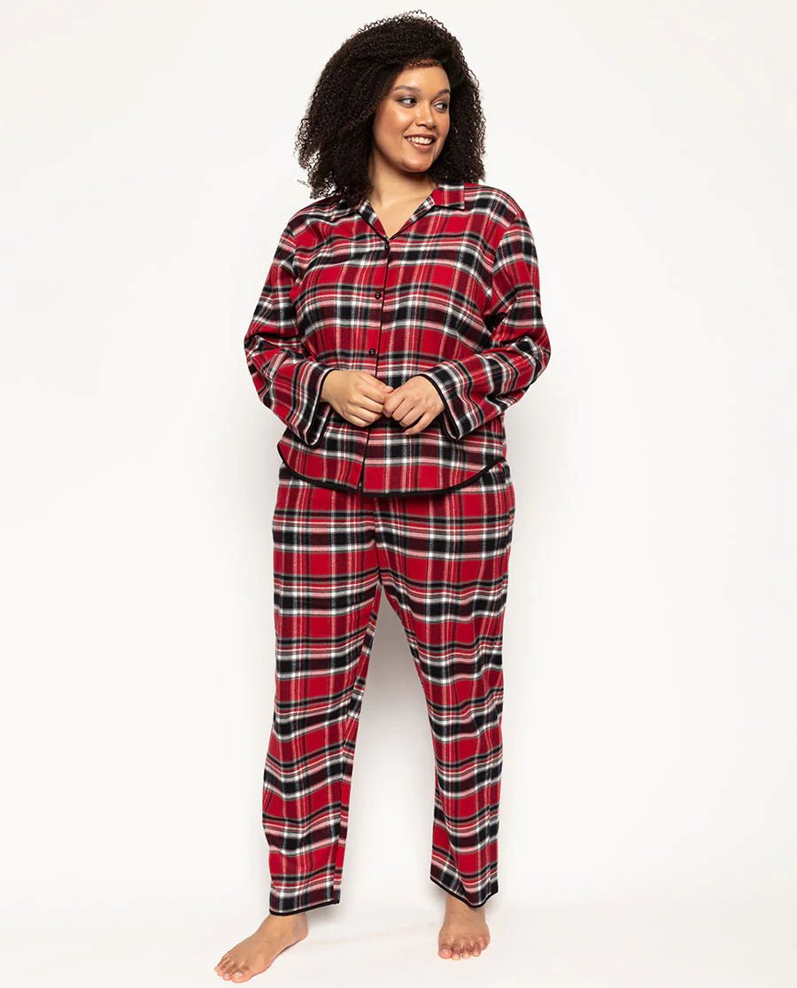 Our checks are never ordinary at Cyberjammies and our Windsor Red Check set is no exception. Made from super-soft, lightly brushed 100% cotton, in bold red, black and white, the set is trimmed with black modal. The long-sleeved top has a revere collar and fastens with modal-covered buttons. Elasticated at the back waist with an adjustable front drawstring, the trousers have two side pockets.
