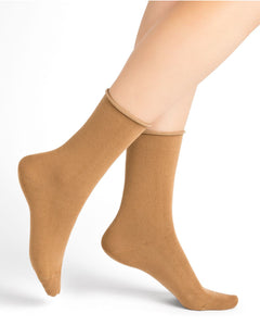 Warm, wool mid-length socks for women from Bleuforêt are French-made luxury for your feet in classic marine navy blue. These ladies woolen socks are cotton-lined so that the 100% merino wool does not come in contact with the skin to reduce any itch or irritation on the skin. These women's socks have roll tops so they don't dig into your legs and they are fine and soft enough to wear with shoes or boots for winter.