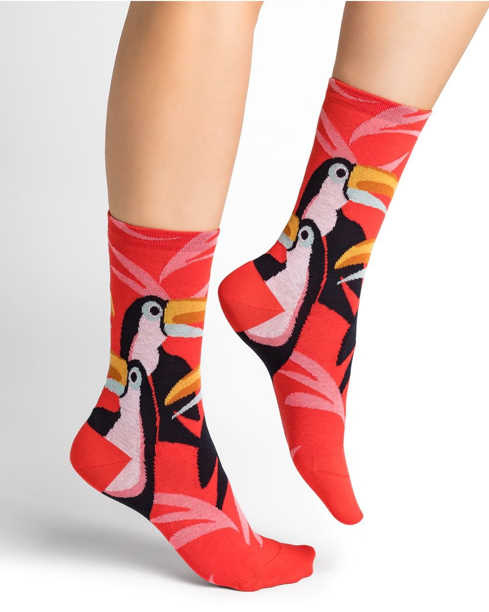 Bleuforet Cotton Toucan Print socks for women are a great girlfriend gift. One Size fits most (36/40) these socks are knitted with soft and durable cotton. Toucan print socks will warm your feet and your heart. Add a little fun to your feet.