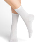 Bleuforet silk socks for women, made from the highest quality of materials - SILK! A luxurious gift for the woman who has everything, silk socks are super fine and silky smooth. Silk socks have thermoregulating properties and available in neige / white and black.