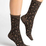Ladies Wool and Cotton Mid-Length Socks from Bleuforet has the perfect blend of wool and cotton to provide warmth without the itch. These ladies socks are cotton lined with gentle grip rolled tops, flat toe seams and reinforced heals. These 18 gauge socks are thin enough for boots and shoes. We love a leopard print in this Marmotte colour.