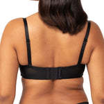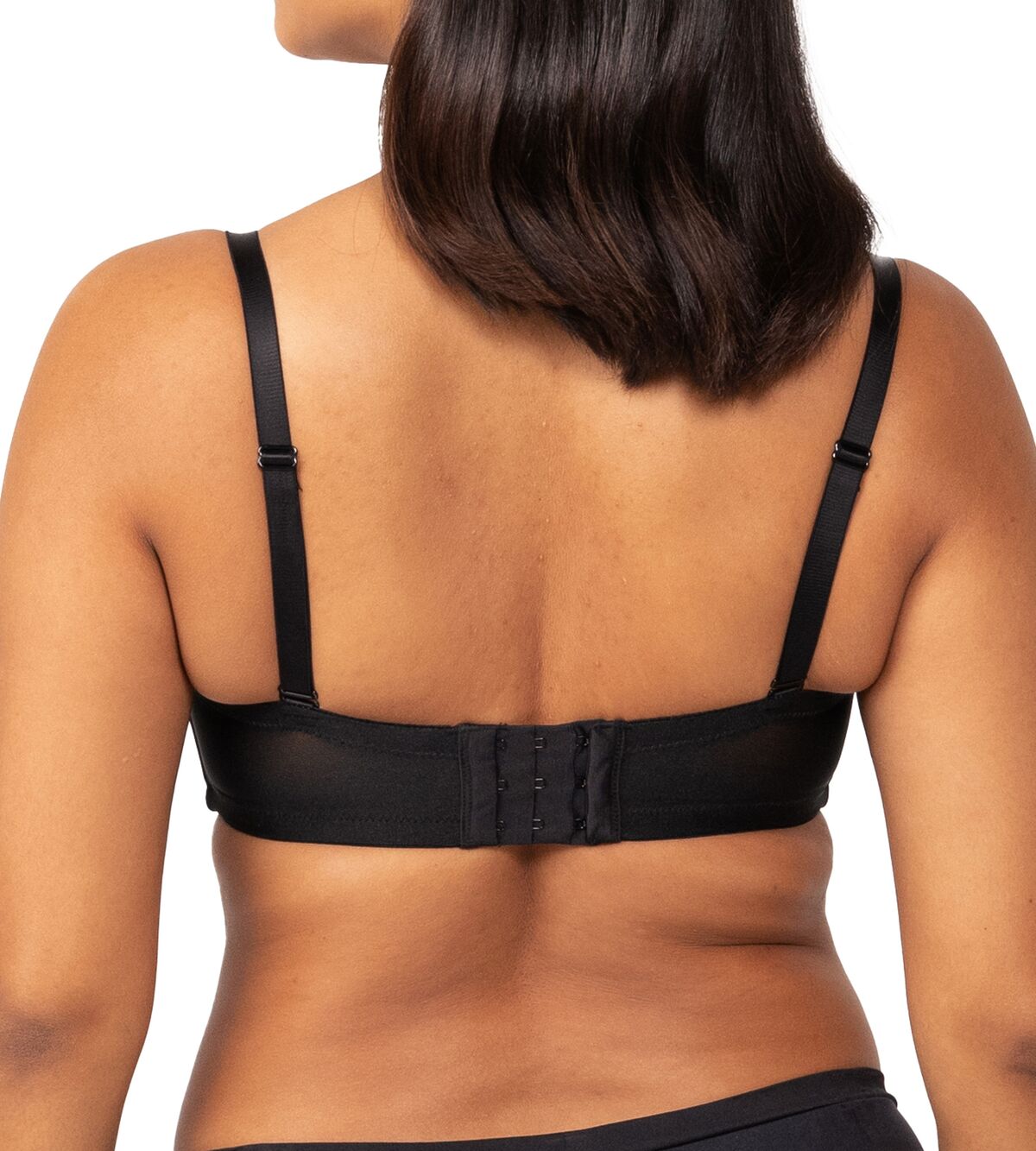 Side angle of Triumph’s Black Strapless Silhouette Bra, showing soft curves and support shop at The Foundation.