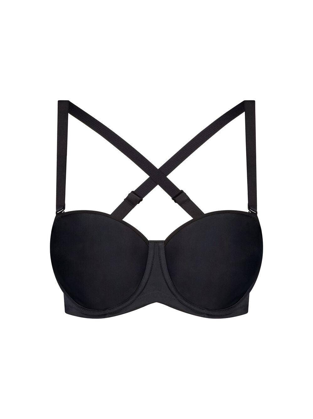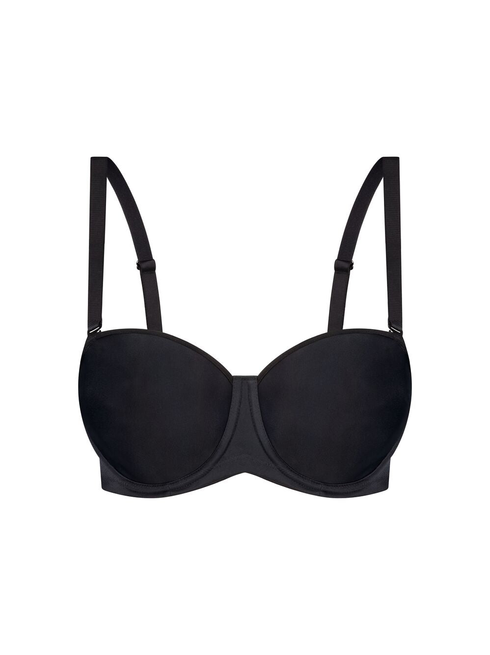 Flat lay of Triumph’s Beautiful Silhouette Strapless Bra in Black, smooth moulded design exclusively at The Foundation.