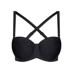 Back view of the Black Silhouette Strapless Bra by Triumph styled with criss-cross straps available now at The Foundation.