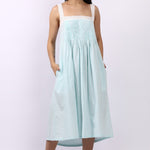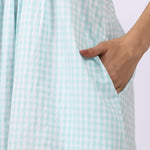 Strappy Pintuck Dress Aqua Gingham