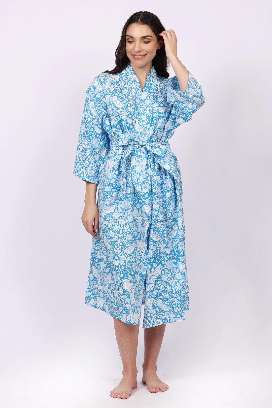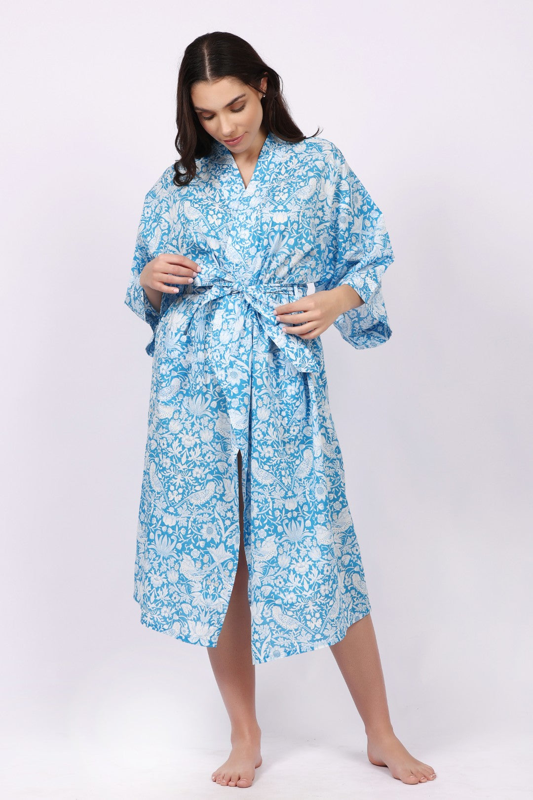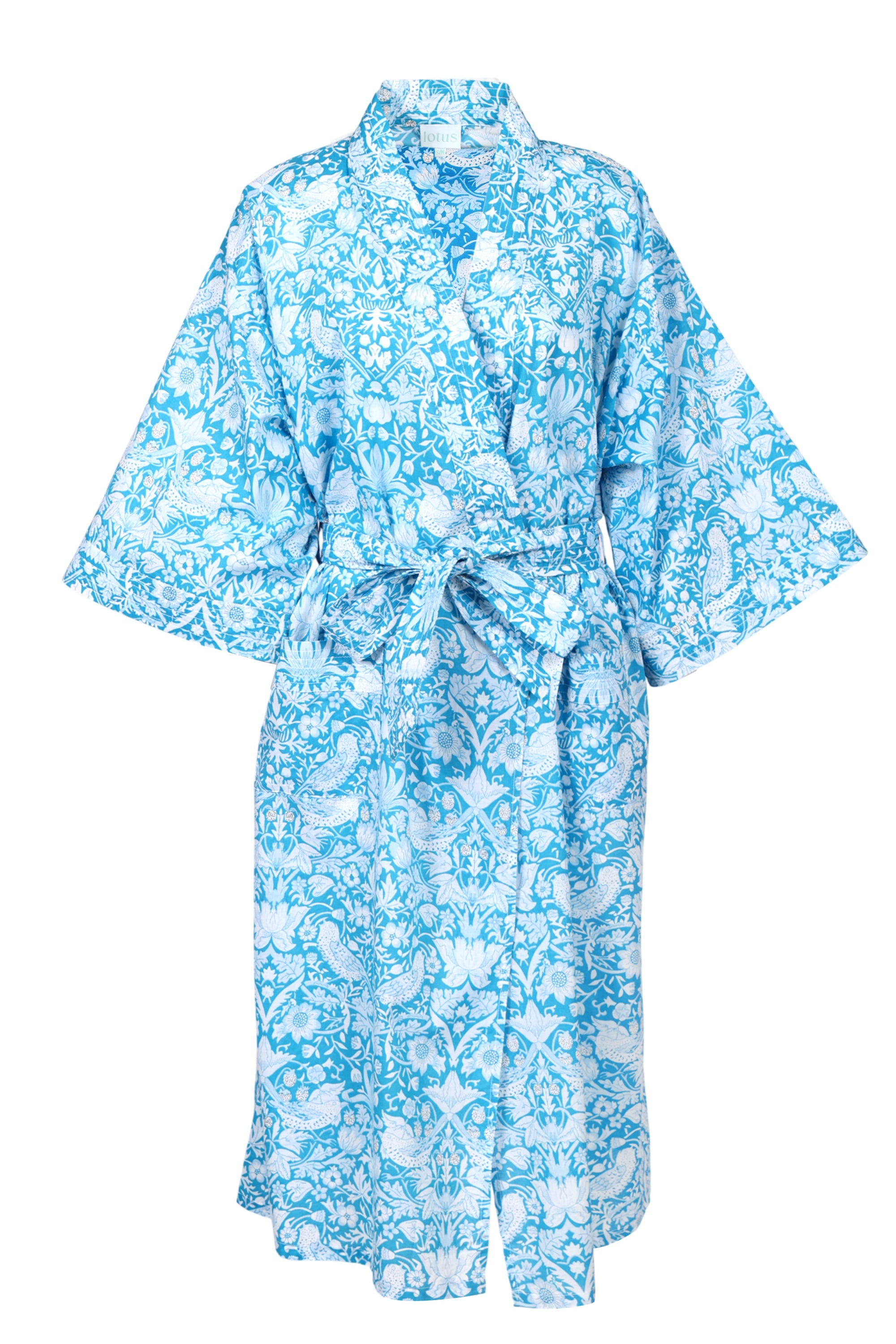 The Strawberry Thief Kimono Robe in Blue Danube is a beautifully lightweight cotton layer designed for relaxed mornings, slow evenings and effortless lounging. Crafted from soft, breathable cotton, this robe features the iconic Strawberry Thief print—reimagined in a serene Blue Danube palette for a fresh, summery feel.