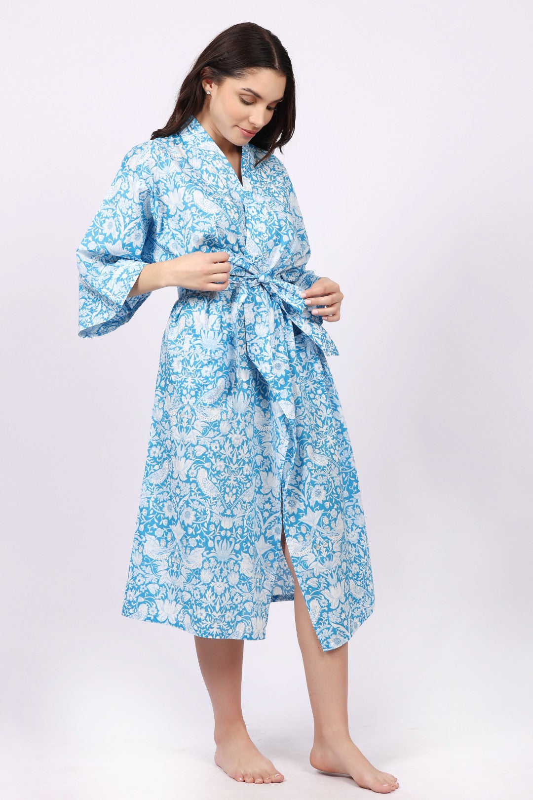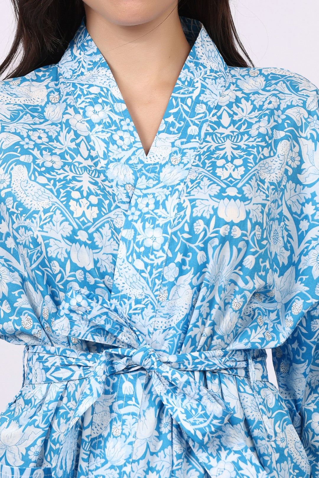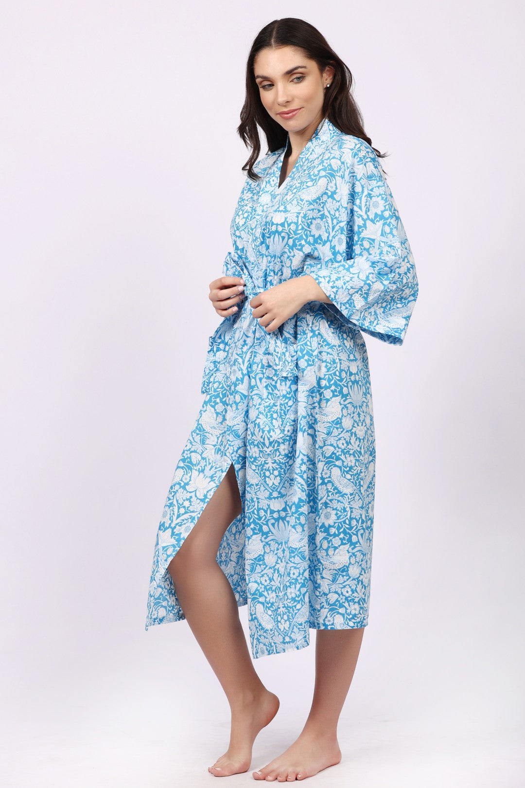 The Strawberry Thief Kimono Robe in Blue Danube is a beautifully lightweight cotton layer designed for relaxed mornings, slow evenings and effortless lounging. Crafted from soft, breathable cotton, this robe features the iconic Strawberry Thief print—reimagined in a serene Blue Danube palette for a fresh, summery feel.