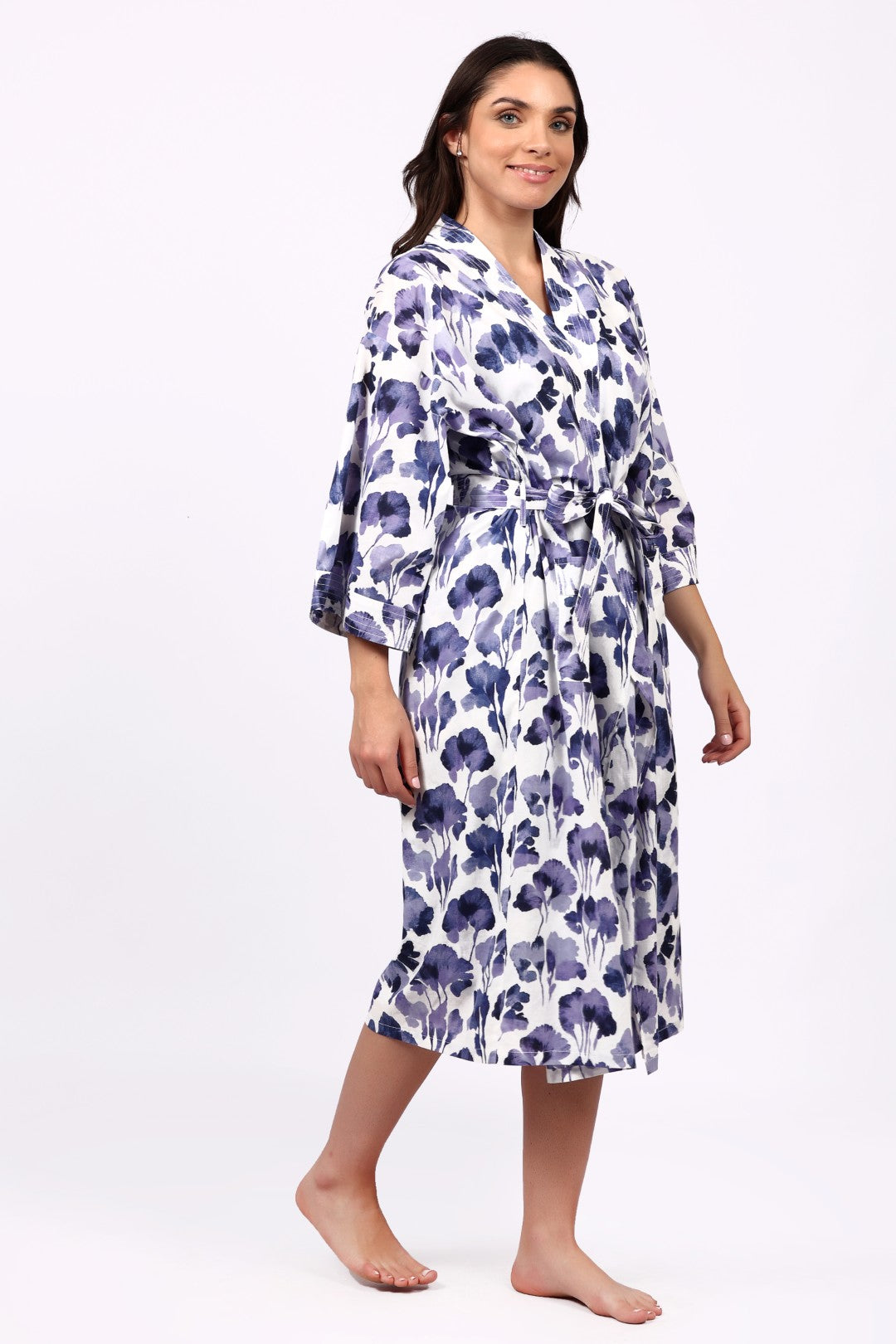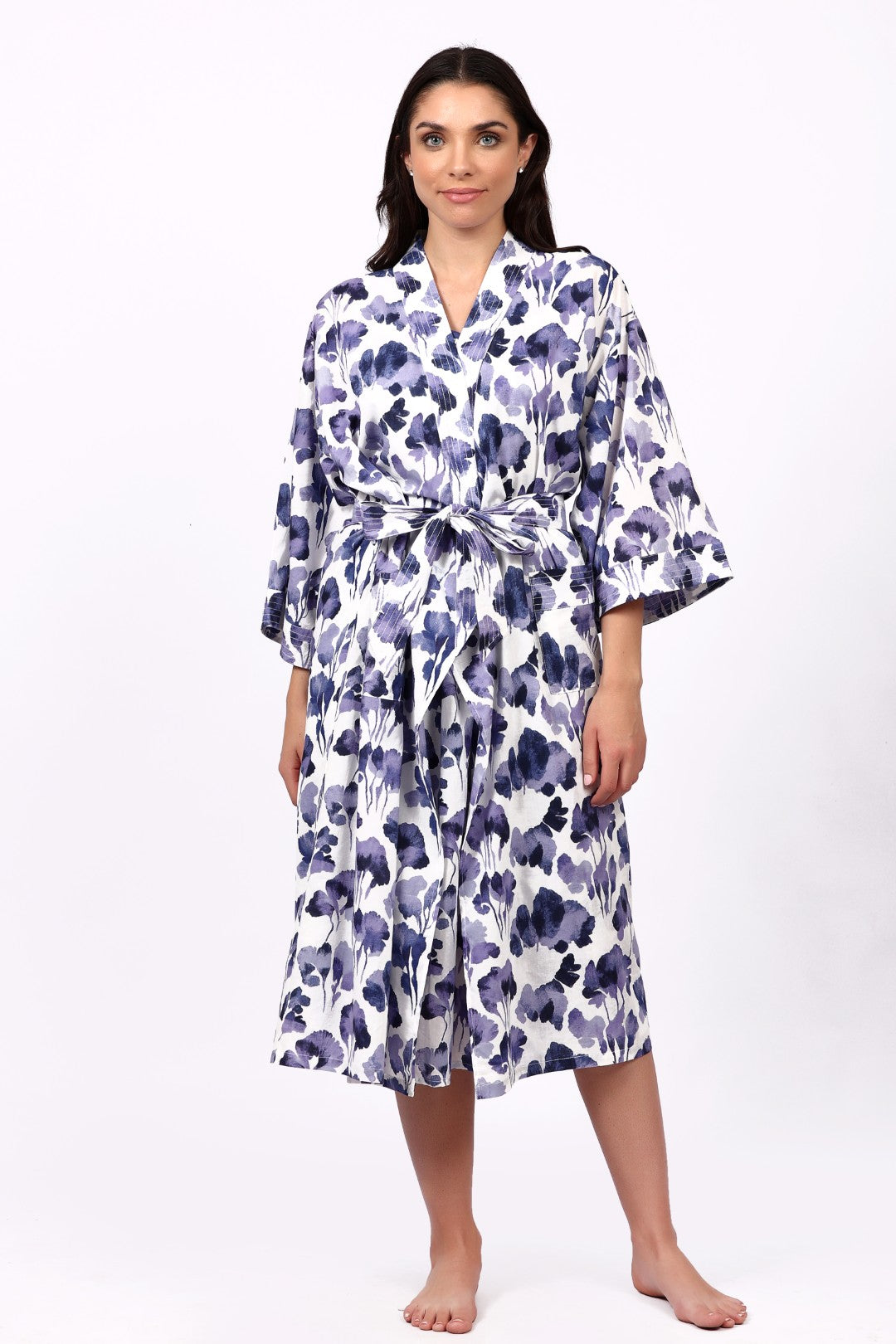 The sleeveless design and flowing shape offer complete freedom of movement, while the soft gathers and keyhole neckline add a feminine, flattering touch. The navy watercolour floral print brings fresh elegance to this easy-to-wear nightdress — perfect for warm evenings when you want to feel relaxed yet refined.