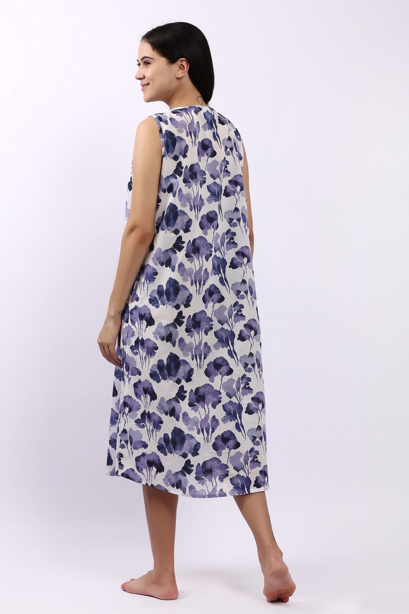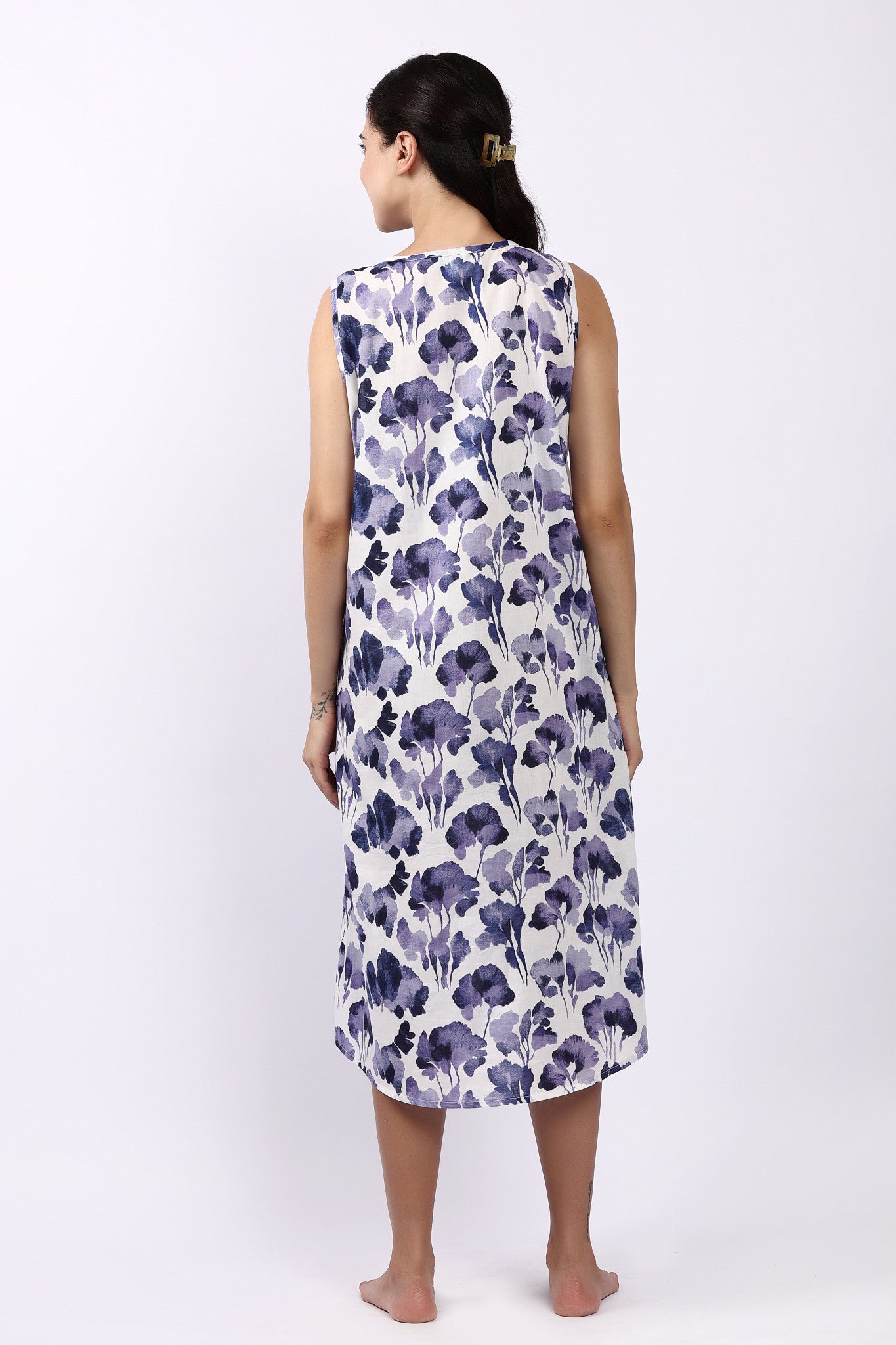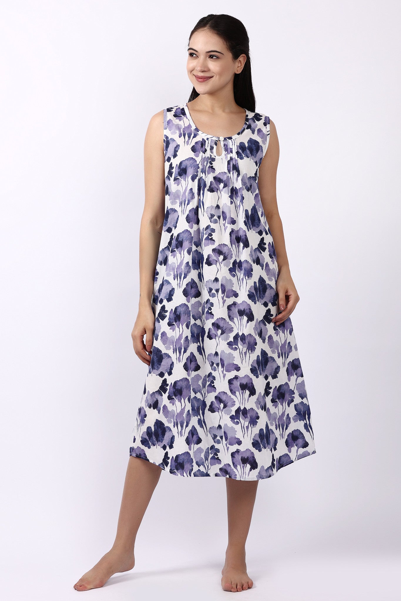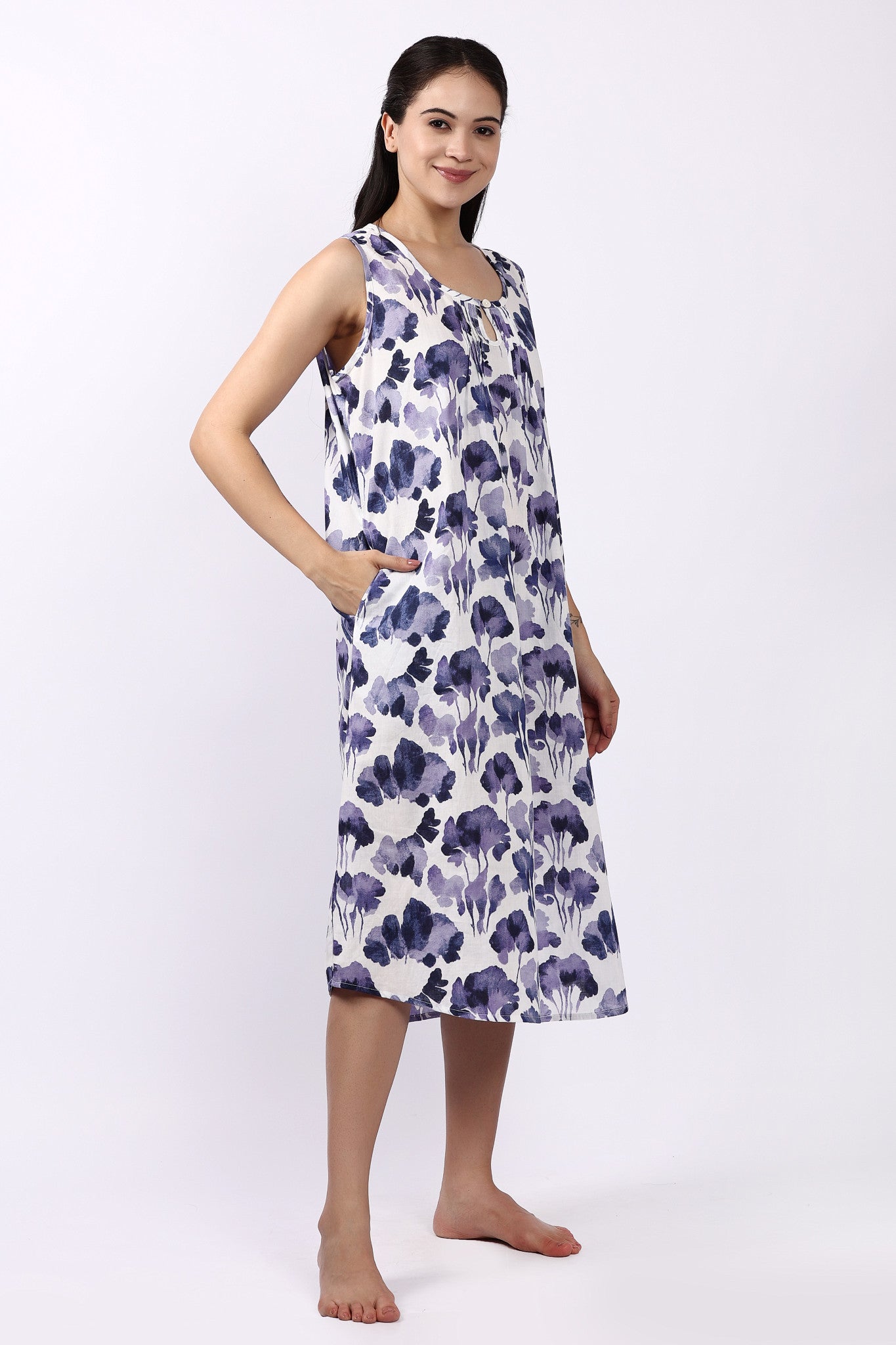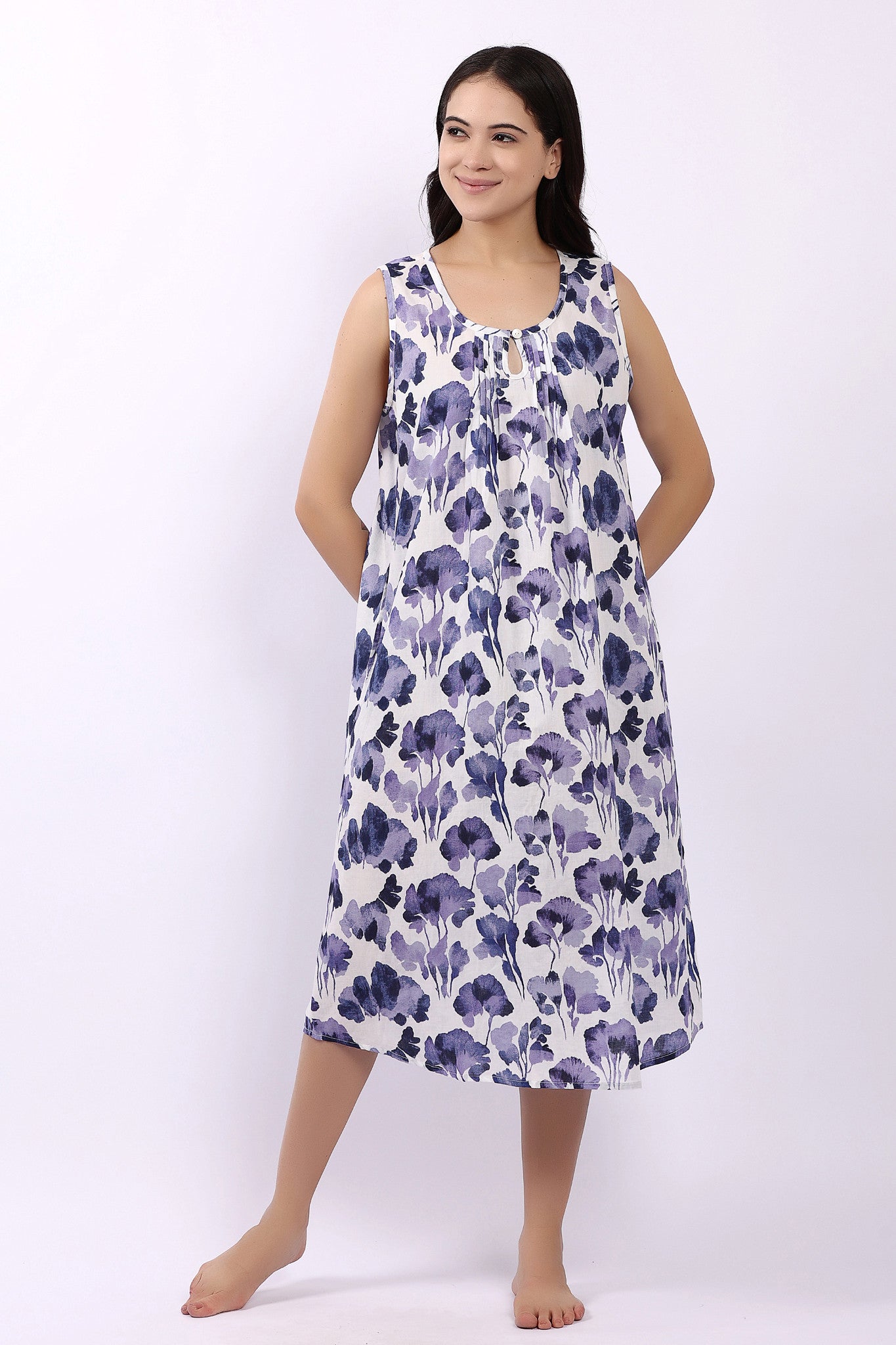 Float into comfort with our Lotus Watercolour Sleeveless Cotton Nightdress. Crafted from finely woven cotton, it feels light as air and allows your skin to breathe, helping you stay cool and at ease throughout the night.