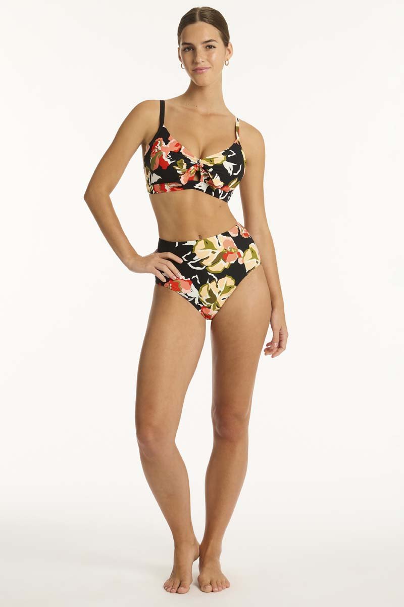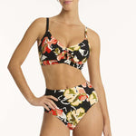 From Sea Level, the Juniper Tie Front DD/E Cup Bralette Bikini Top is great for the bigger bust with hidden underwire support and side boning and adjustable and convertible straps. Pair with the Juniper Panelled High Waist Pant or Juniper Mid Bikini Pant. Also available in a singlet or Tie Front One Piece swimsuit. This bikini top is shown with the Juniper High Waist Pant, sold separately.